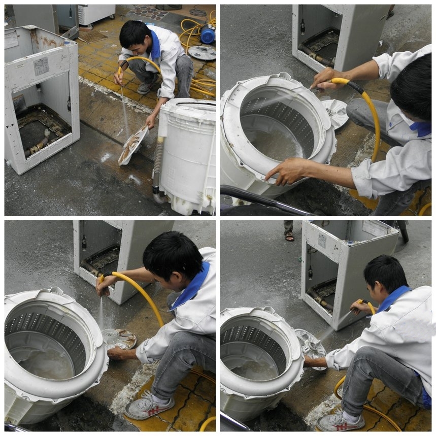• Ảnh trước – sau tại 7 vị trí: lồng, khoang thùng, ống xả, gioăng, puly, đối trọng, sàn máy.